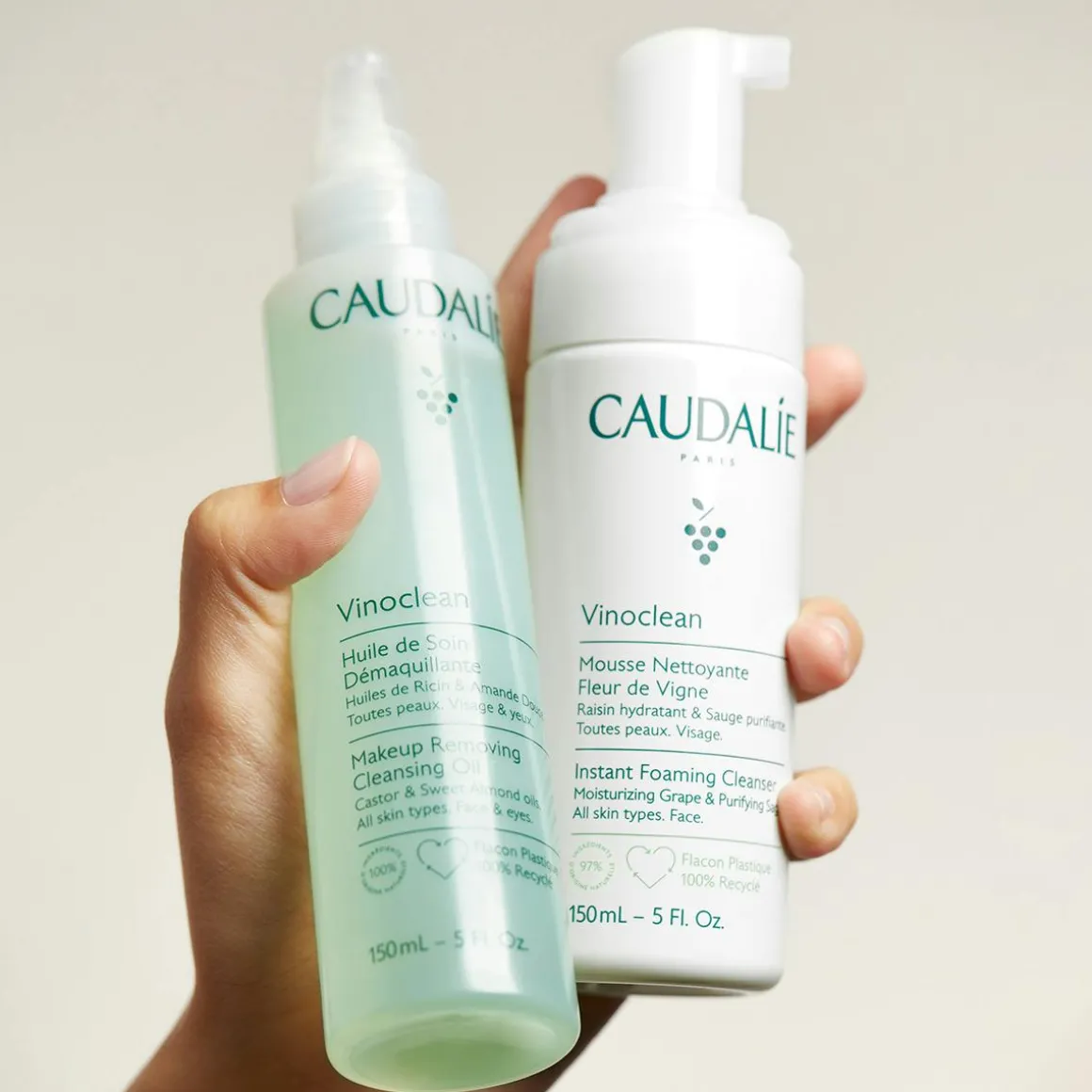 Mixez la Mousse Nettoyante à l’Huile de Soin Démaquillante pour nettoyer et démaquiller en un seul geste.